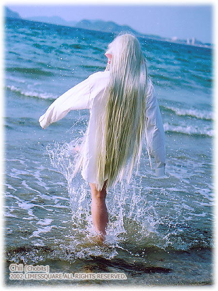 しかし、これで服とウィグが少し濡れてしまった…撮影地 白石浜海水浴場(福岡県宗像郡津屋崎町)