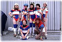 初瀬乃瀬奈、Mickey、らいむ、飯塚みしゃき、510-448、春日野ひかる、ぶらぼー女性でもこれだけ大運動会で揃えられないだろー!みたいな感じでした。最初は二人で始めたものが次第に人数が増えて3年くらい経った今、8人まで増えました。本当は御堂巴(時田さん)もいるのですが、一服しに行ってるみたいです(爆)。
